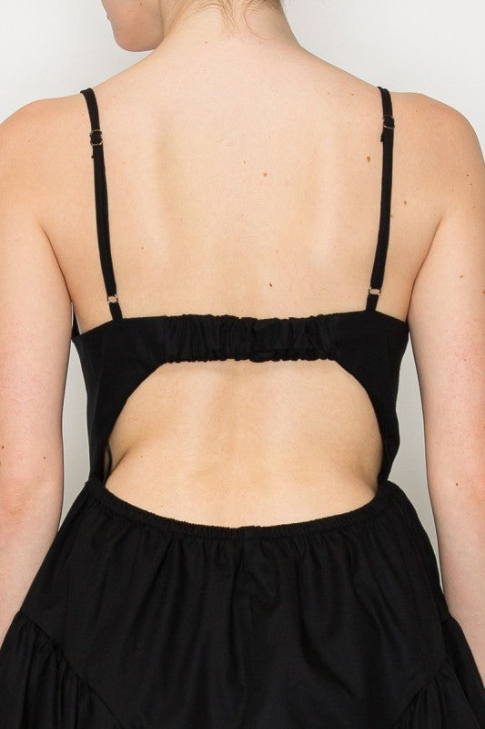 This elegant dress combines a flattering fit-and-flare silhouette with a modern square neckline and sleeveless straps for a comfortable, stylish look. The back cutout adds a subtle touch of allure, while the mini length keeps it fresh and youthful. Perfect for any occasion, this solid-colored dress offers both confidence and charm.