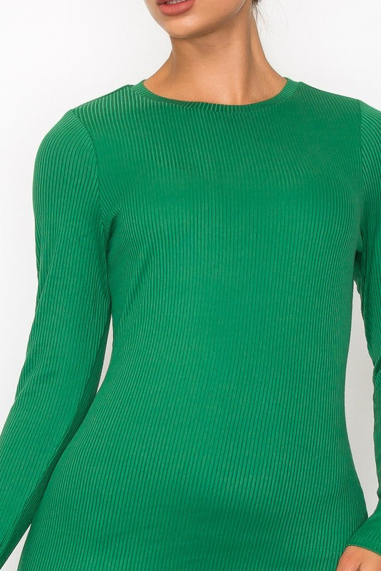 This solid-colored knit dress combines comfort and style with its flattering bodycon fit and mini length. Featuring a round neckline and long sleeves, it offers elegant coverage while the front double-layer detail adds a unique, fashionable touch. Perfect for any occasion where you want to feel confident and chic.