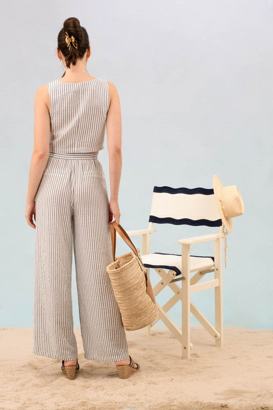 P 752 - Stripe Crop Top & Lounge Bottom Set (Top Only)