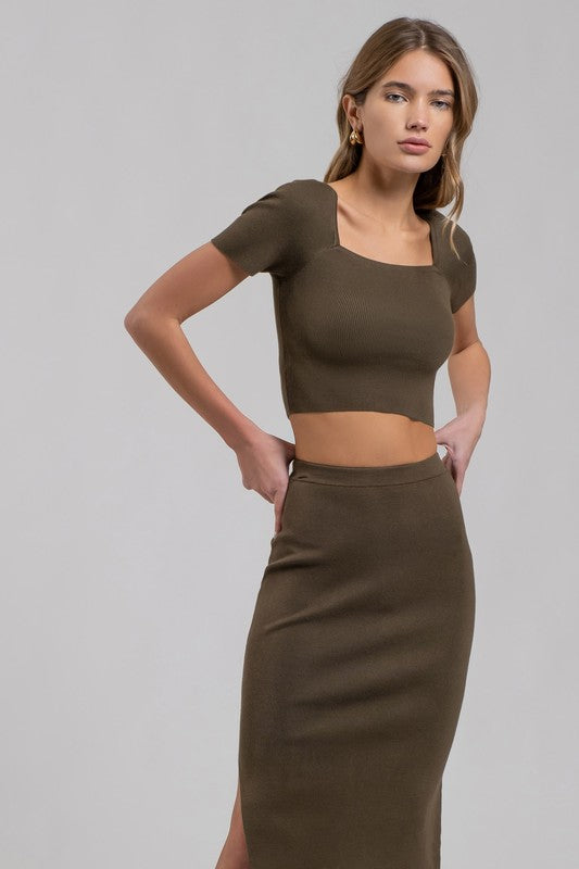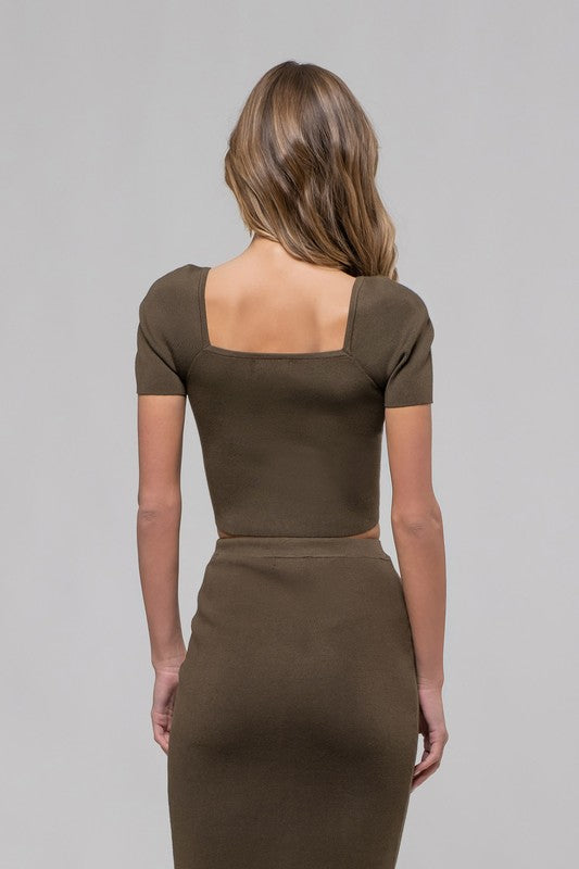 This sweater knit crop top features a stylish square neckline and comfortable short sleeves, offering a flattering fit that supports your confidence throughout the day. Crafted for both comfort and style, it’s an ideal choice for casual wear or layering in cooler weather.