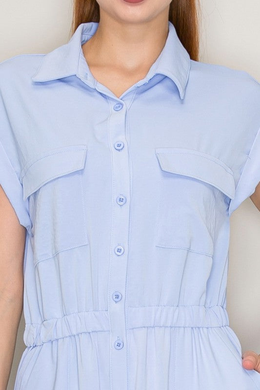 Bold and unapologetic, this woven hybrid jumpsuit delivers sharp style with serious edge. The collared neckline and button-down front command attention, while the elasticized waist and wide-leg cut move with you. Lightweight, breathable fabric keeps pace with your intensity. Functional pockets and full-length coverage make it a fearless choice for trendsetters.