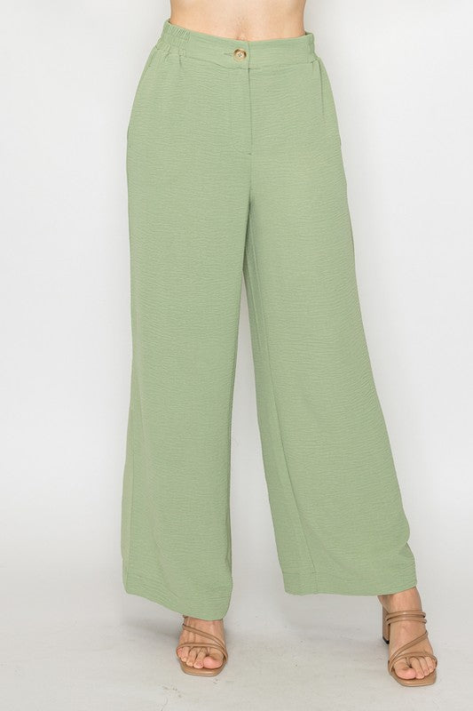 Timeless wide-leg pants designed for effortless style. High-rise waist with zip-fly closure, elastic backing, and functional pockets make these woven essentials a wardrobe staple. The relaxed silhouette flatters all day while the full-length cut keeps you polished and put-together.